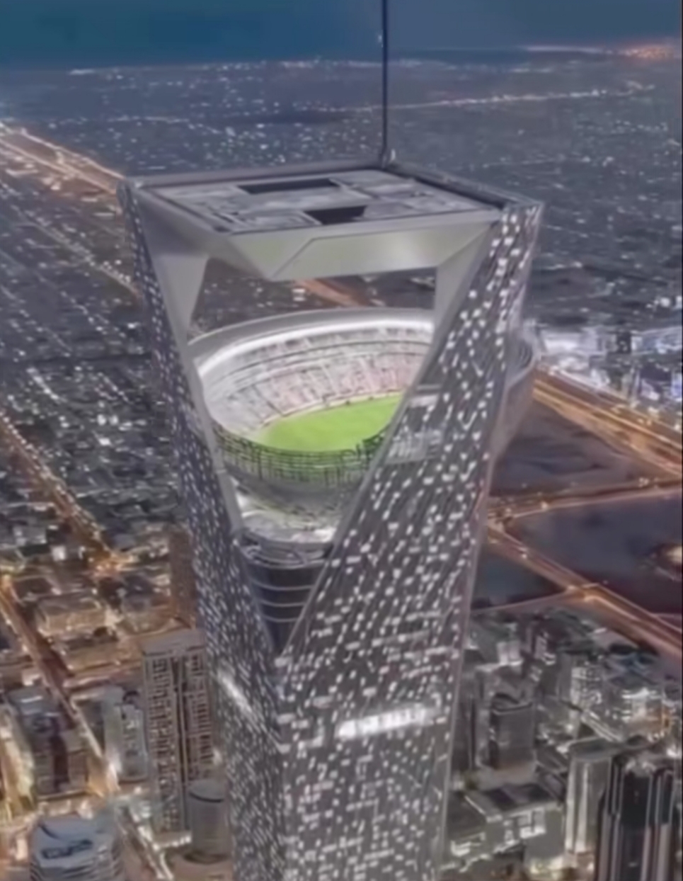 Arábia Saudita revela estádio futurista a 350 metros de altura para a Copa do Mundo 2034